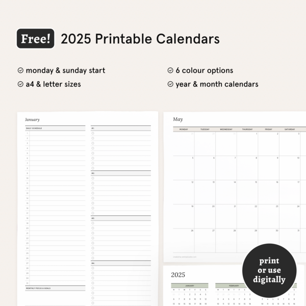 Free 2025 Monthly & Yearly Printable Calendar Templates