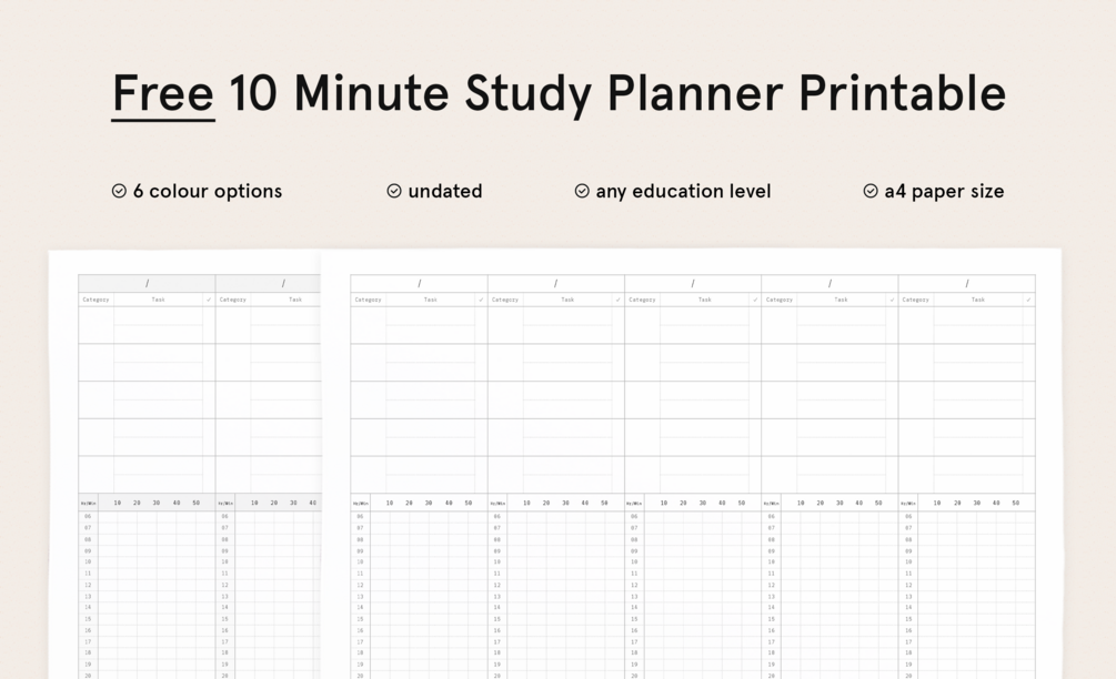 Plot study out every 10 minutes with this worksheet. Covers 5 days of studying. These files work as printables or on your digital device.