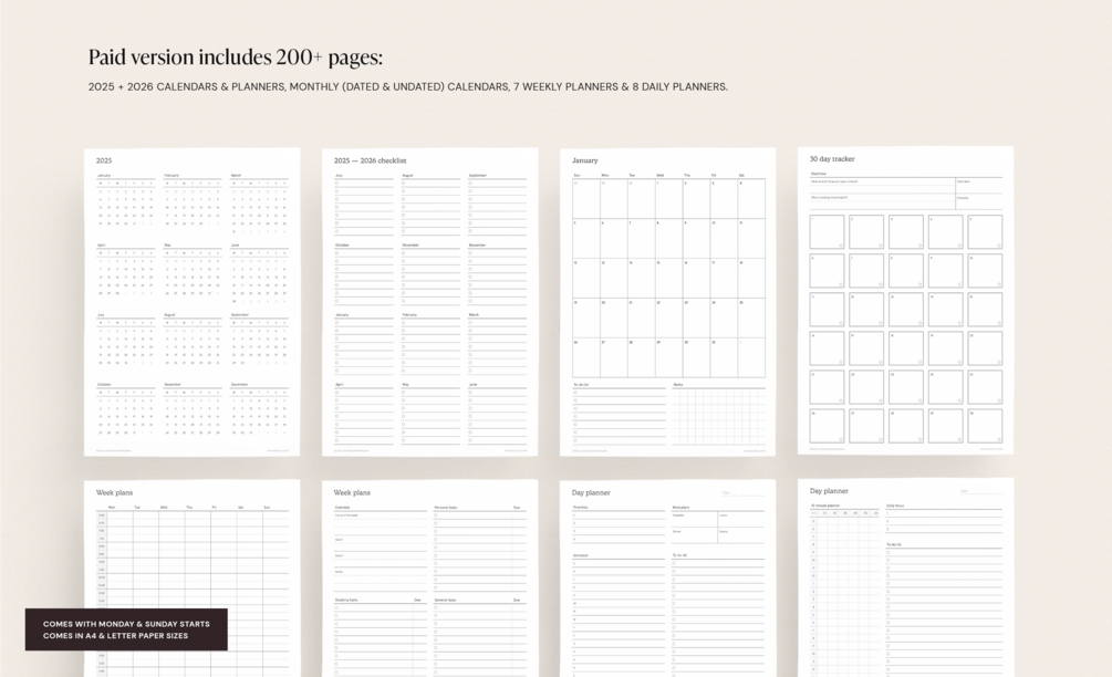 • yearly organisers, calendars, checklists, organisers for 2025 + 2026