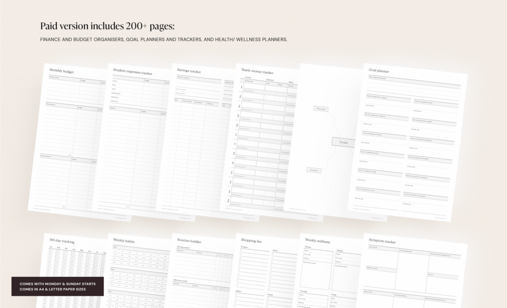 The free version includes 23 handy pages to get started. The paid version includes 200 pages! This planner bundle can be used as a PRINTED file, or DIGITALLY on tablets, iPads and PCs.