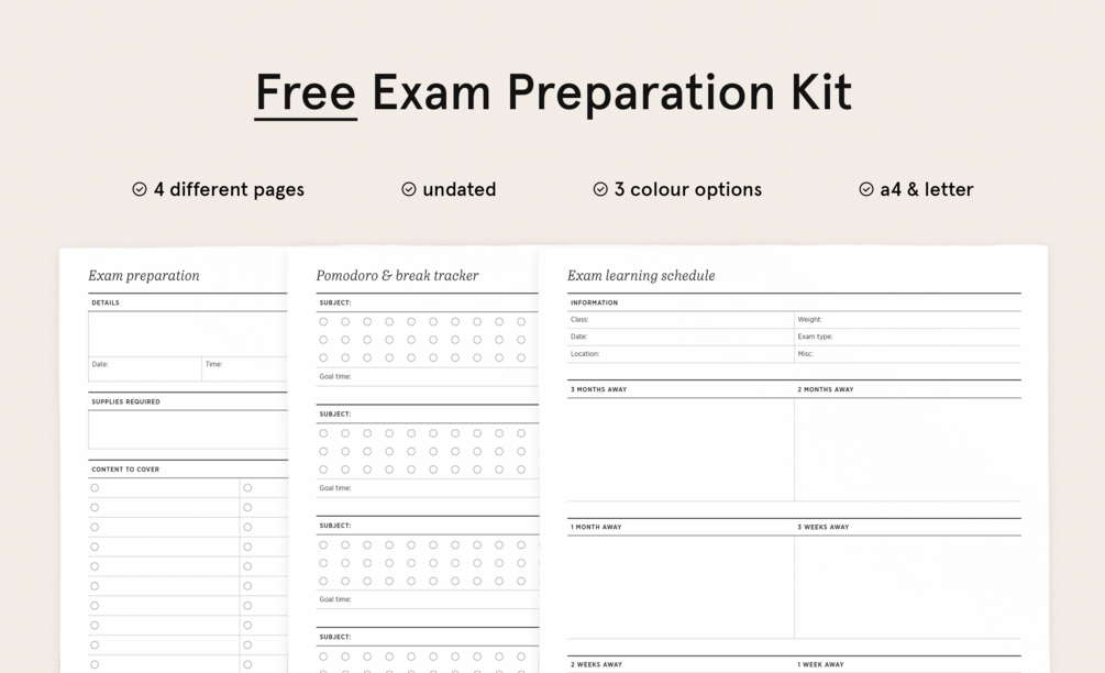 Make preparing for exams, quizzes, midterms, etc with multiple planning templates and student worksheets! Everything is undated for continuous use. These files work as printables or on your digital device.