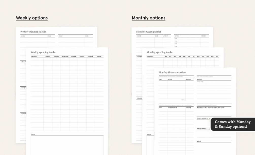 Keep on top of your finances, spending and budgeting! These files work as printables or on your digital device.