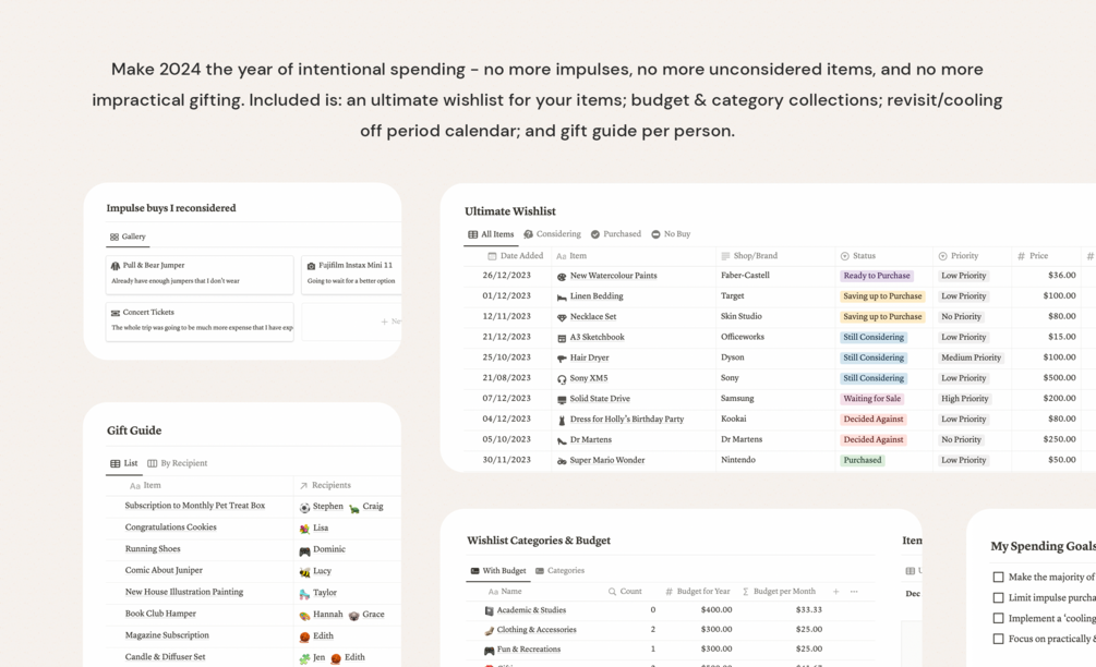Free Intentional Spending & Gifting Template for Notion