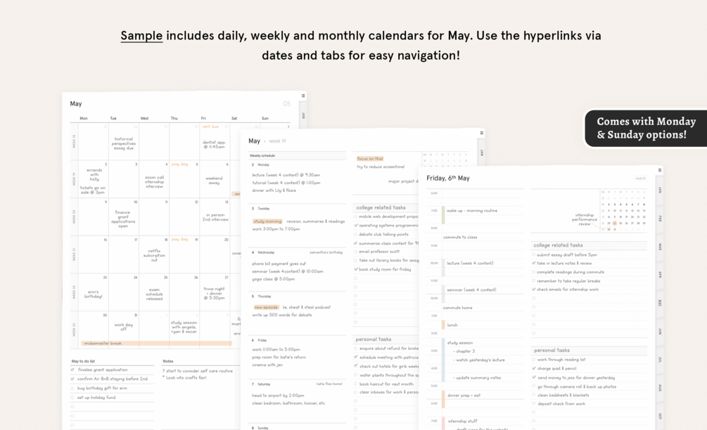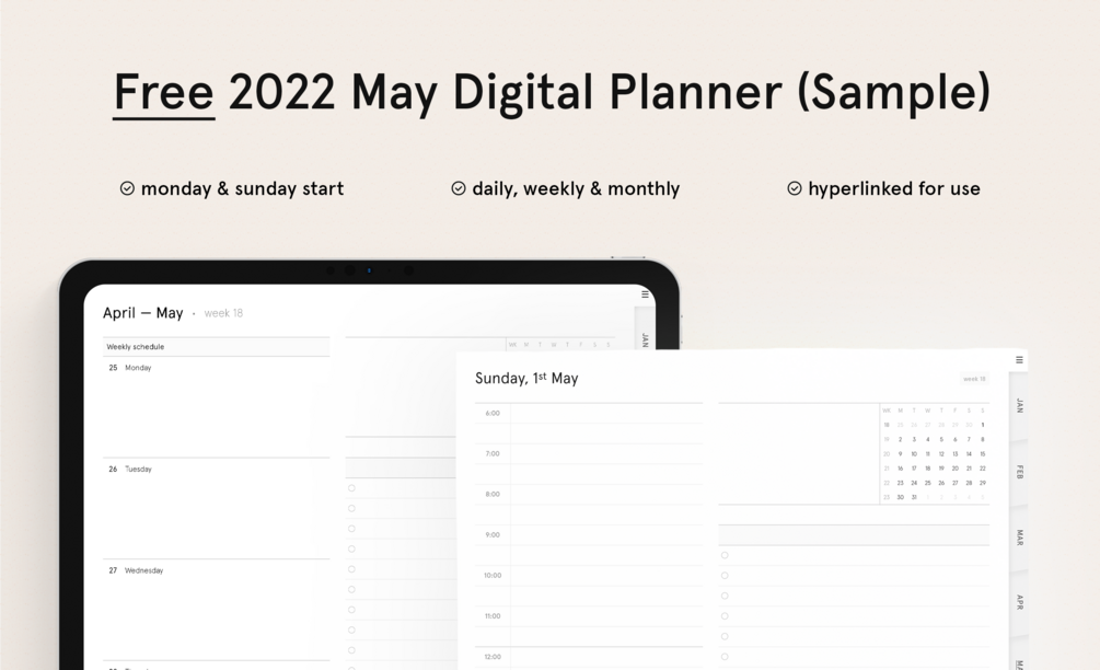 2022 Digital Daily, Weekly & Monthly Planner (Free May Sample)