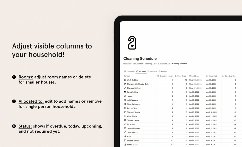 Cleaning Schedule / Household Tracker for Notion